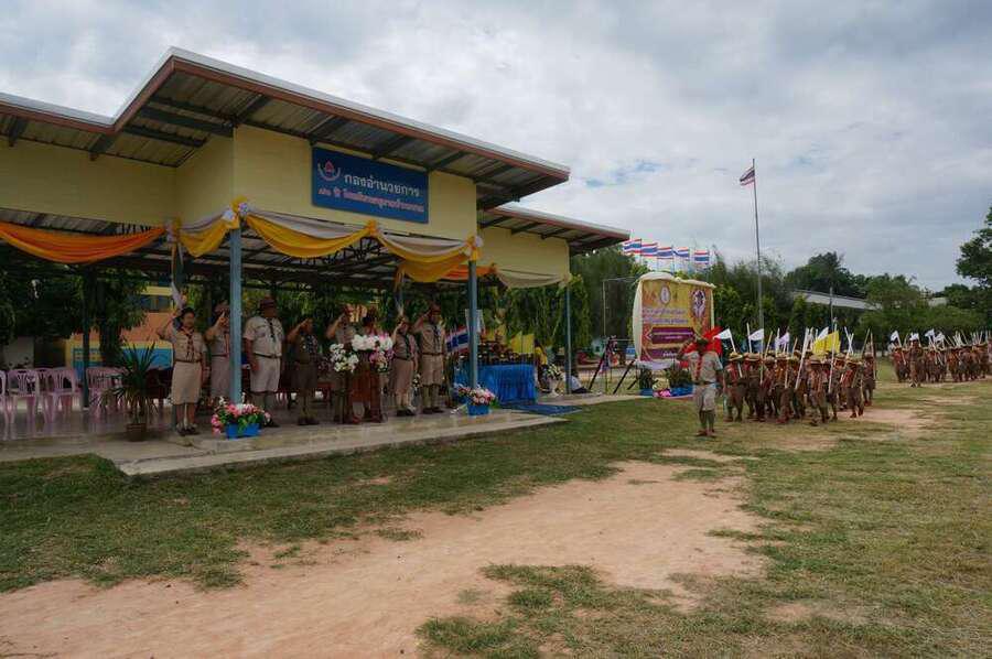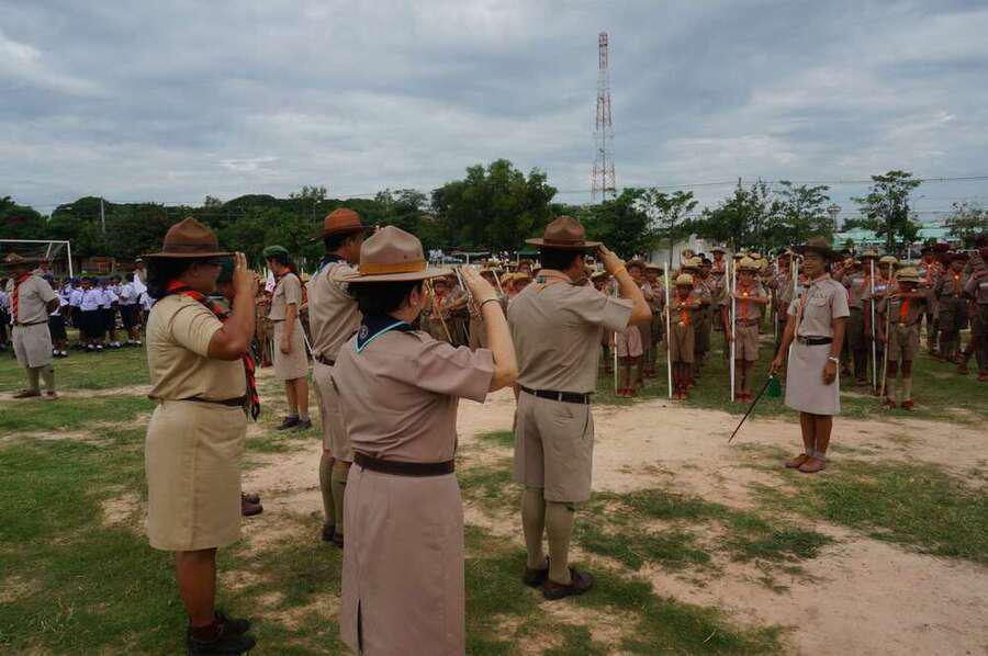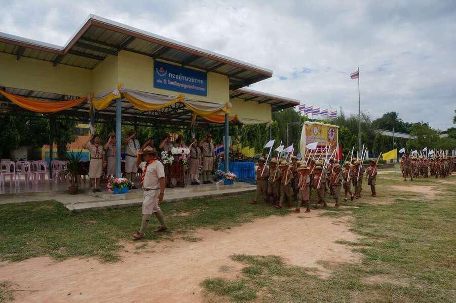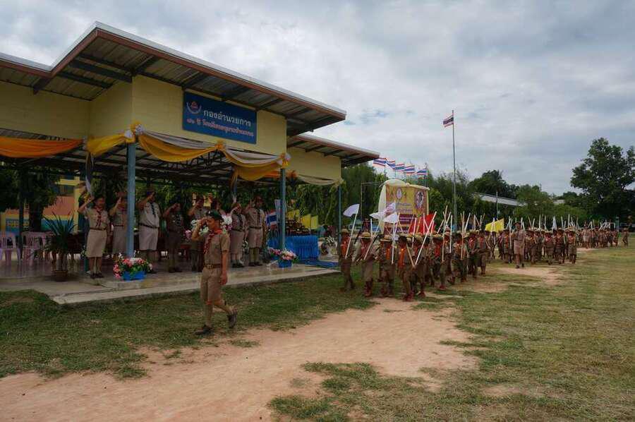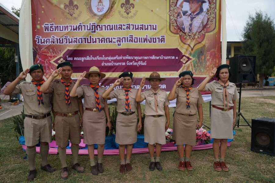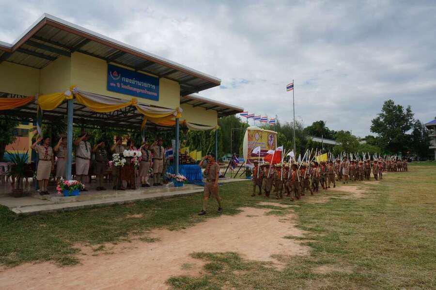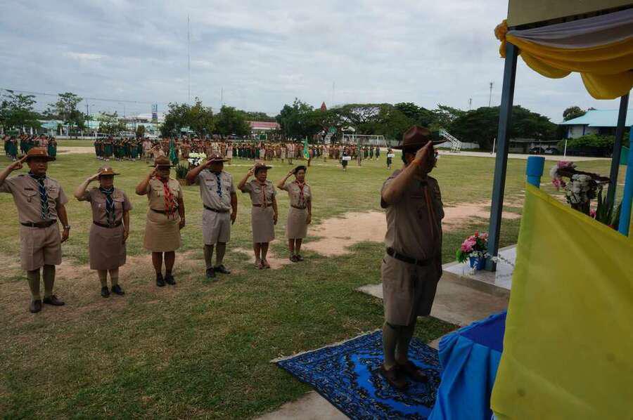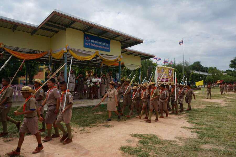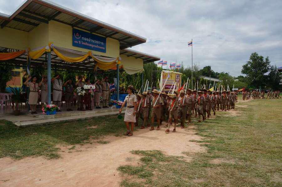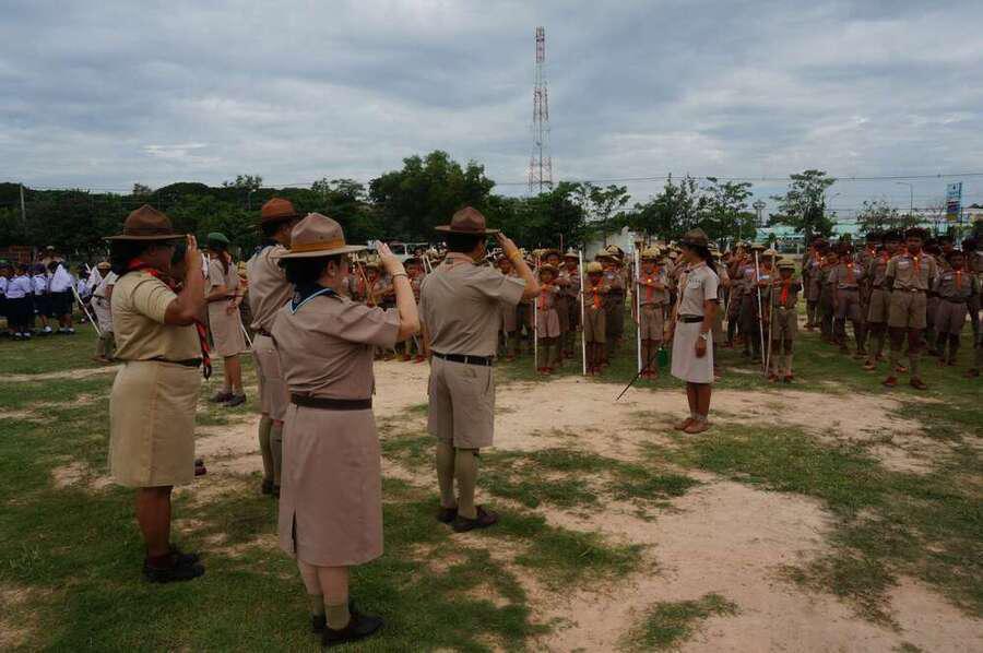 พิธีทบทวนคำปฏิญาณและเดินสวนสนาม ของลุกเสือ เนตรนารี เนื่องในวันคล้ายวันสถาปนาคณะลูกเสือแห่งชาติ ประจำปี 2562