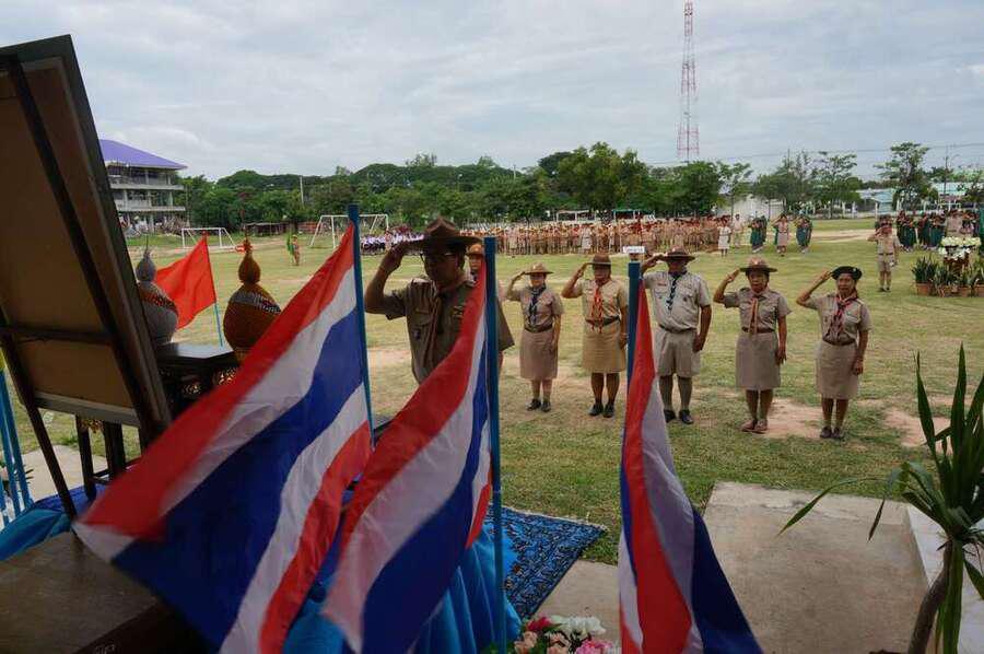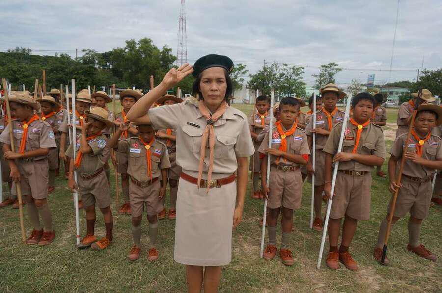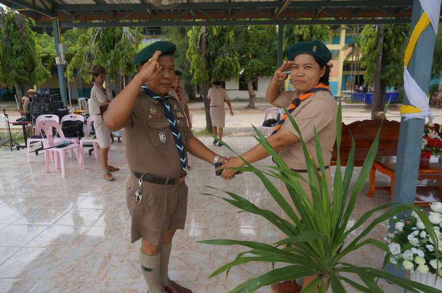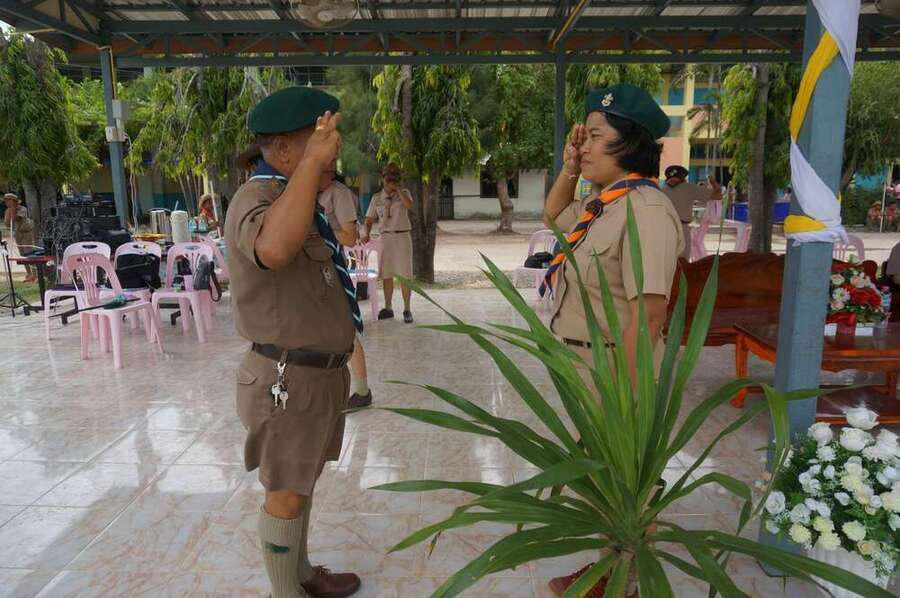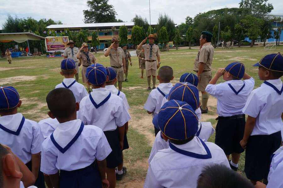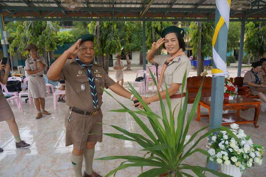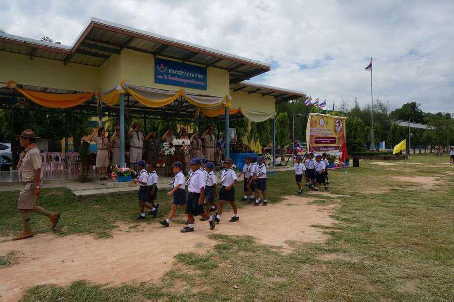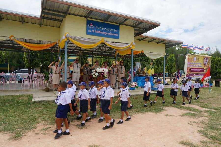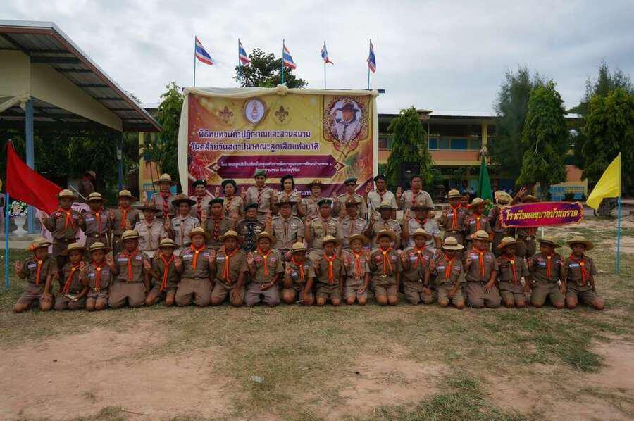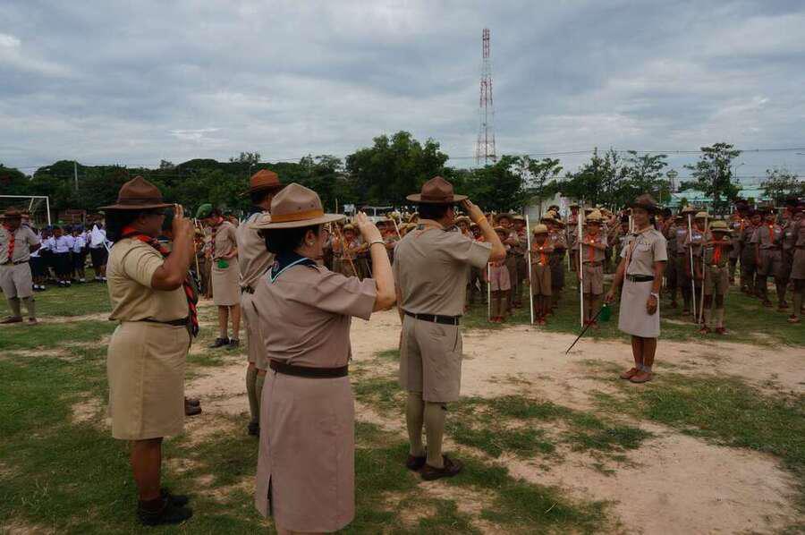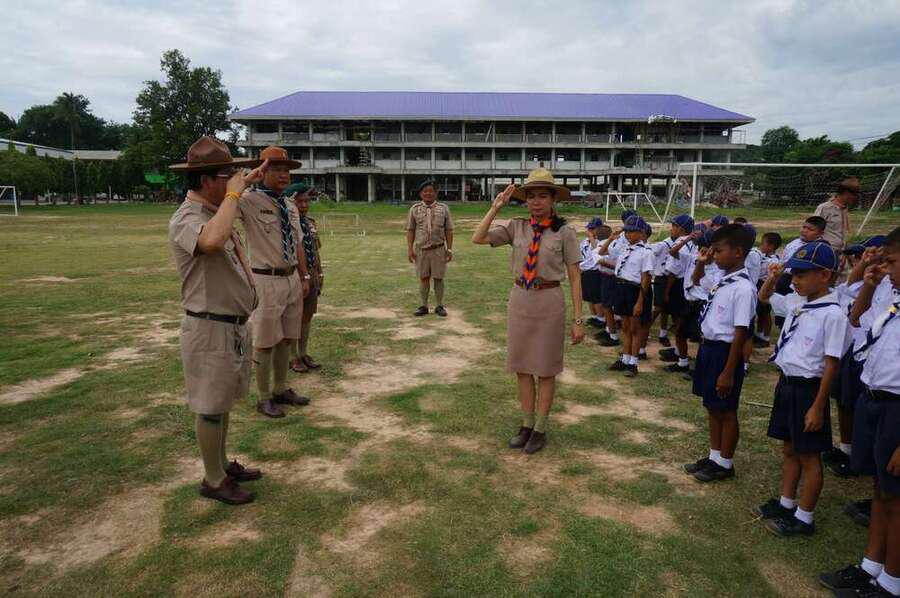 พิธีทบทวนคำปฏิญาณและเดินสวนสนาม ของลุกเสือ เนตรนารี เนื่องในวันคล้ายวันสถาปนาคณะลูกเสือแห่งชาติ ประจำปี 2562