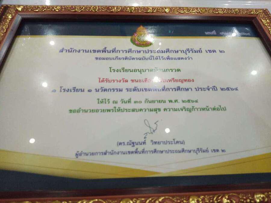 เมื่อวันที่ 7 กุมภาพันธ์ 2565 นายอภิชาติ หวังสวัสดิ์ปรีชา ผอ.รร.อนุบาลบ้านกรวด ได้รับ ? รางวัลชนะเลิศระดับเหรียญทอง ? 1 โรงเรียน 1 นวัตกรรม ประจำปี 2564 จากสำนักงานเขตพื้นที่การศึกษาประถมศึกษาบุรีรัมย์ เขต 2 และได้รับเกียรติจาก ท่าน ดร.ณัฐนนท์ วิทยาประโคน ผอ.สพป.บุรีรัมย์ เขต 2 เป็นประธานในการมอบเกียรติบัตรและโล่รางวัล ณ หอประชุมโรงเรียนอนุบาลประโคนชัย(อำนวยกิจราษฎร์วิทยาคาร) อำเภอประโคนชัย จังหวัดบุรีรัมย์. S:0